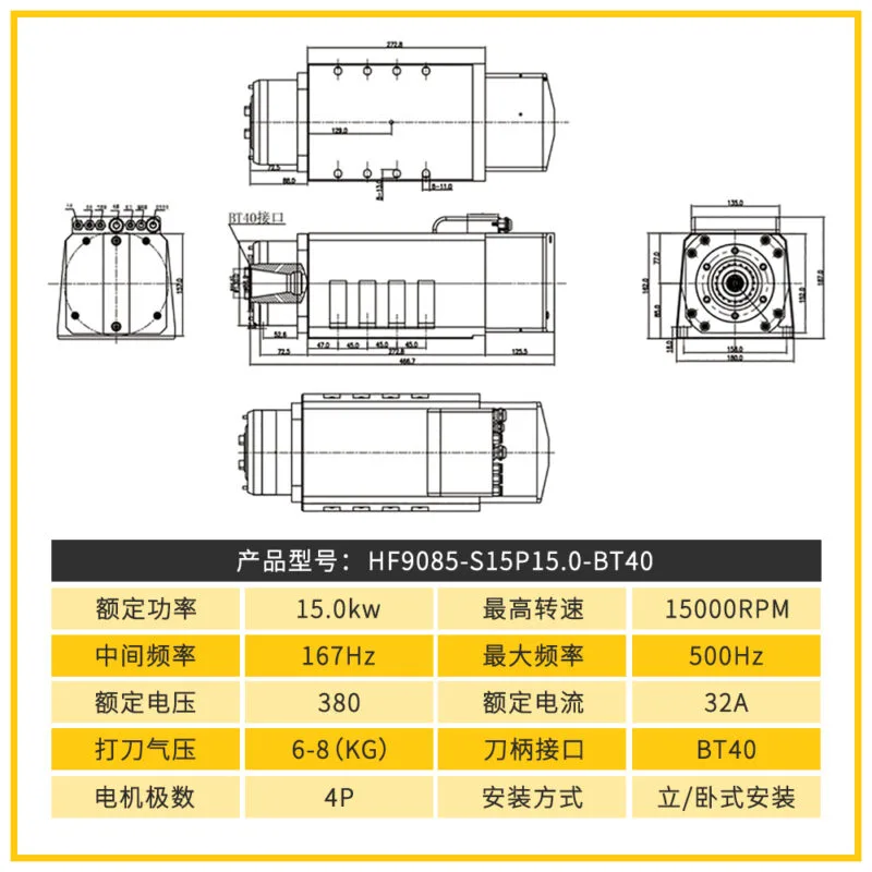 HF9085-S15P15.0-BT40自动换刀水冷主轴