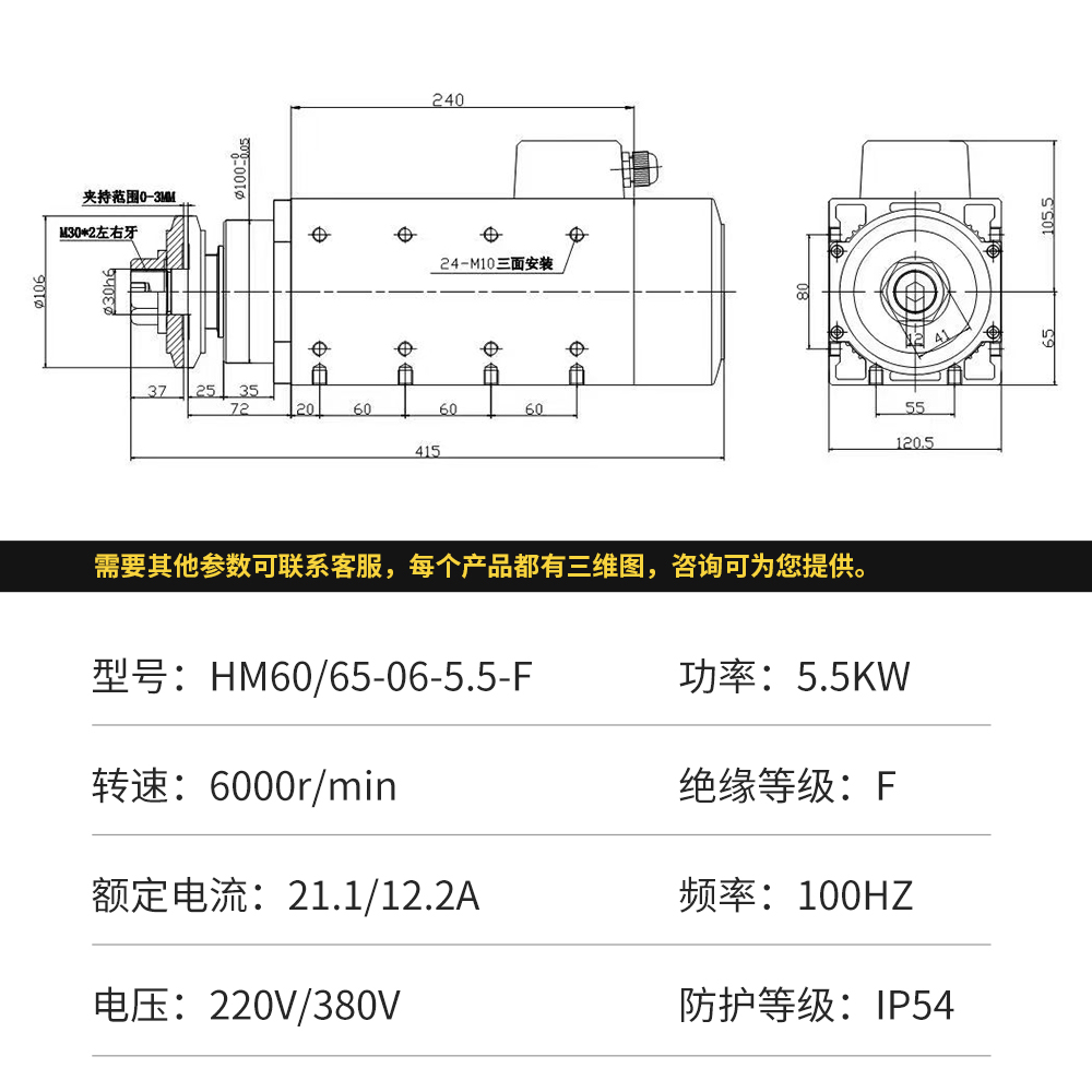 HM6065风冷切割主轴电机