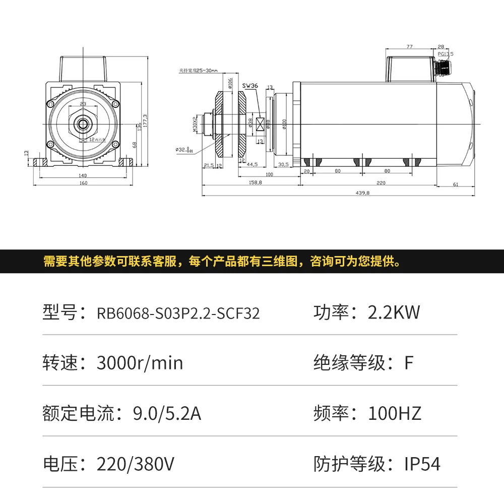 HM6068-0.3-3.0 非标定制切割风冷主轴电机