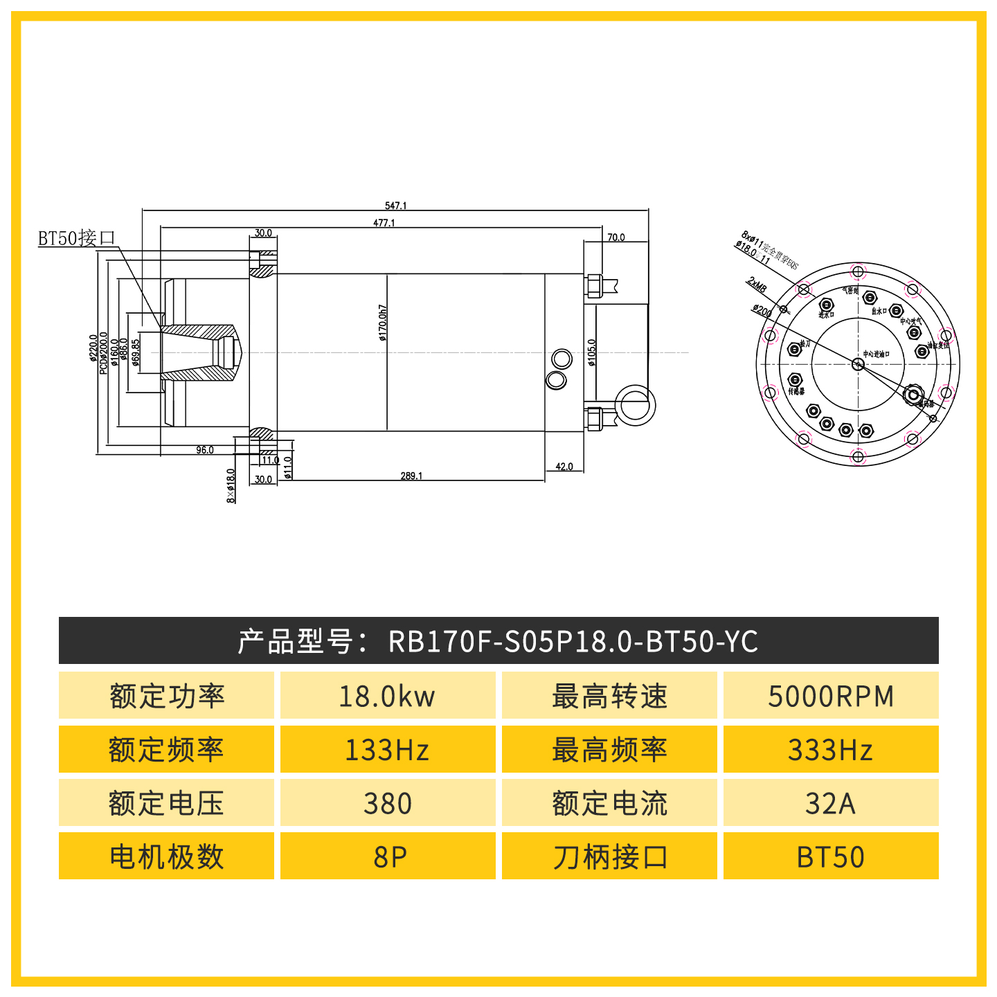 RB170 旋转接头永磁同步冷却主轴电机