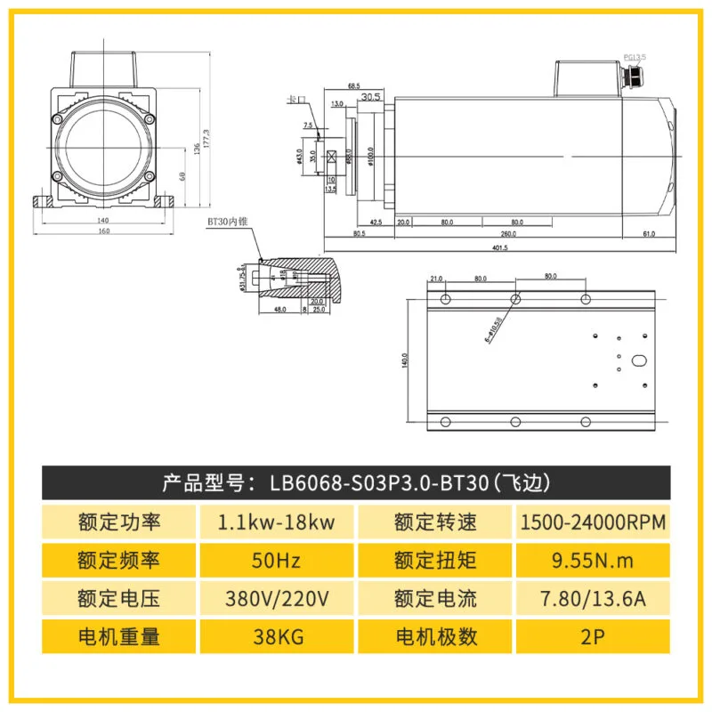 RB6068-S03P3.0-BT30手动换刀风冷主轴