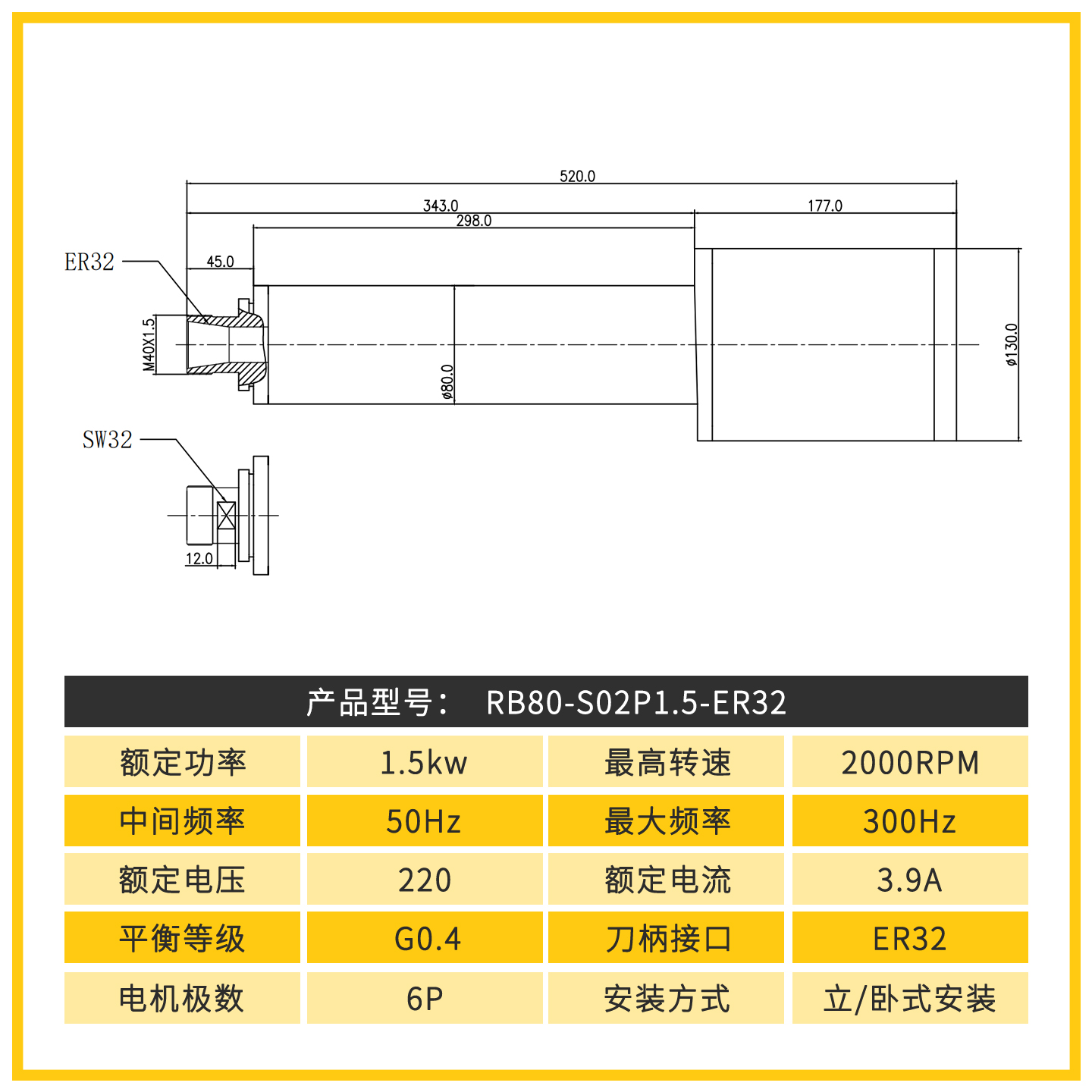 RB80-S02P1.5-ER32水冷手动换刀磨床主轴